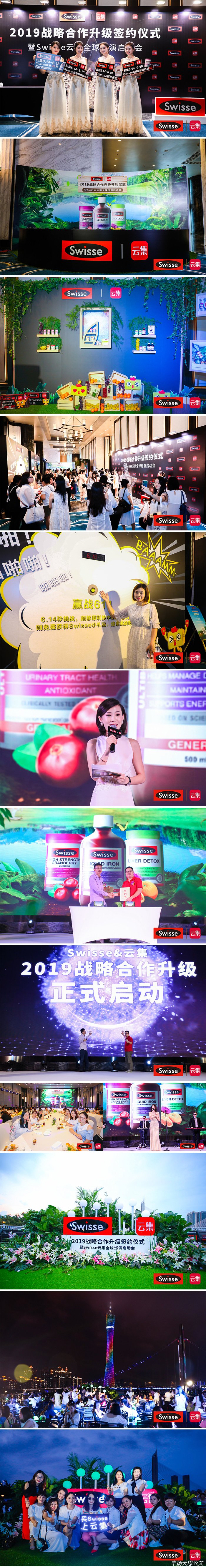 2019年6月13日,Swisse&云集戰略合作升級正式簽約 暨Swisse云集全球巡演正式啟航,在廣州麗思卡爾頓酒店成功舉辦,云集醫藥保健總監金鋒和Swisse電商部總經理Gary Hu高層出席了簽約儀式,眾多云集店主及Swisse的擁躉也蒞臨現場,見證了此次戰略合作達成。